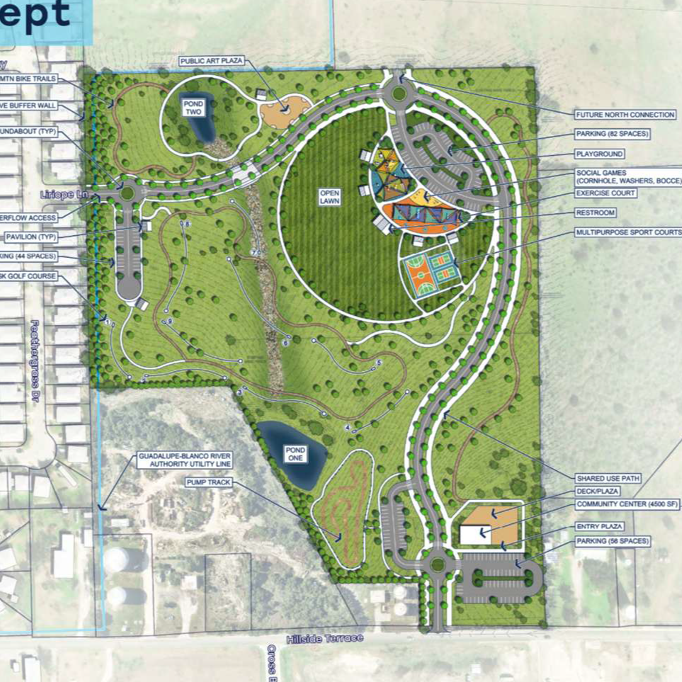 The existing gravel parking lot at Buda City Park nearest the pavilion will be replaced with all-weather surface parking spaces.