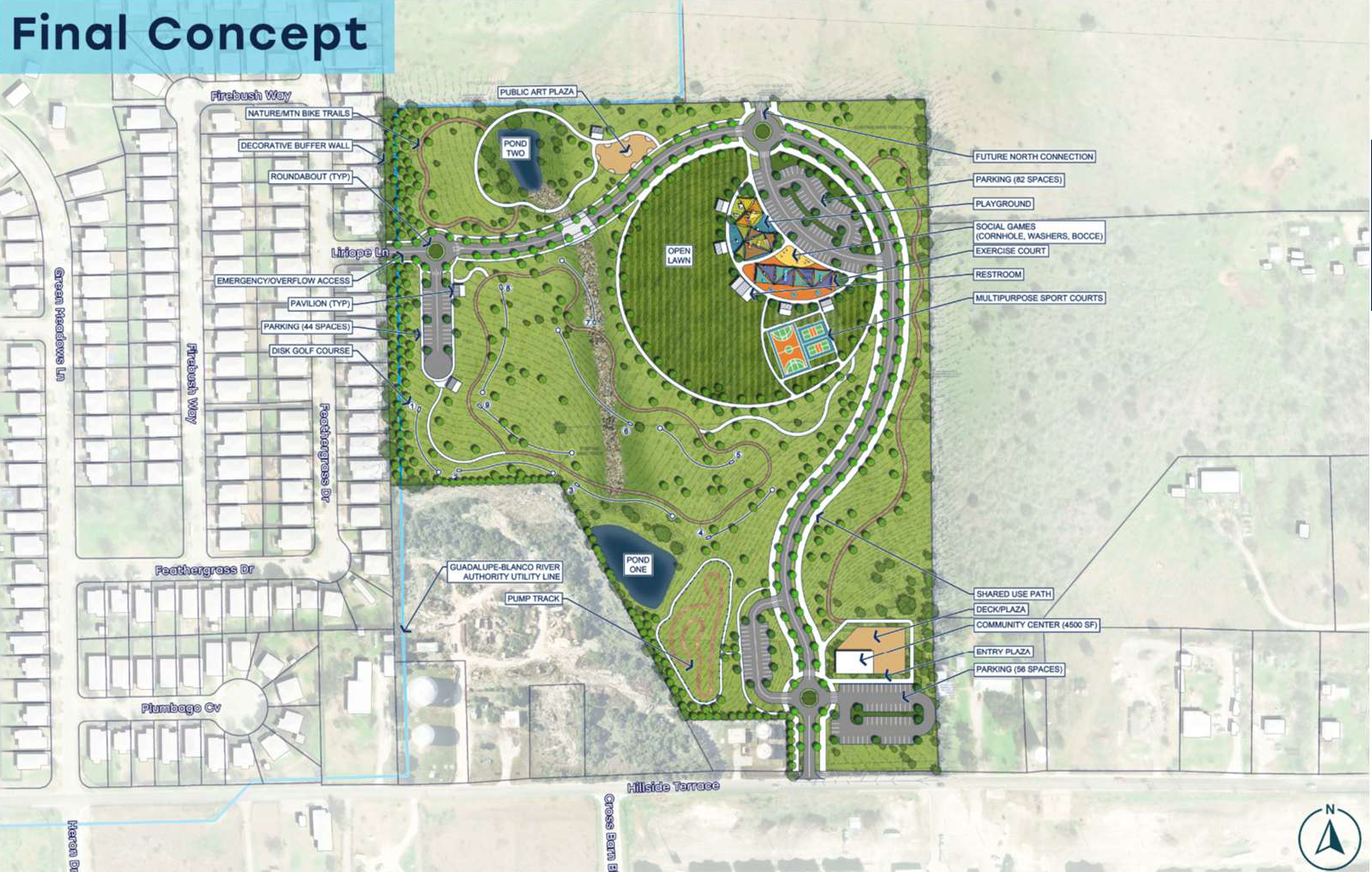 Garison Park is located just north of downtown Buda along Onion Creek. Phase I of the Garison Park Project improvements as identified in the City’s Capital Improvements Plan includes park and land restoration and construction of parking lots, pavilions, restrooms and trails, including public water access.